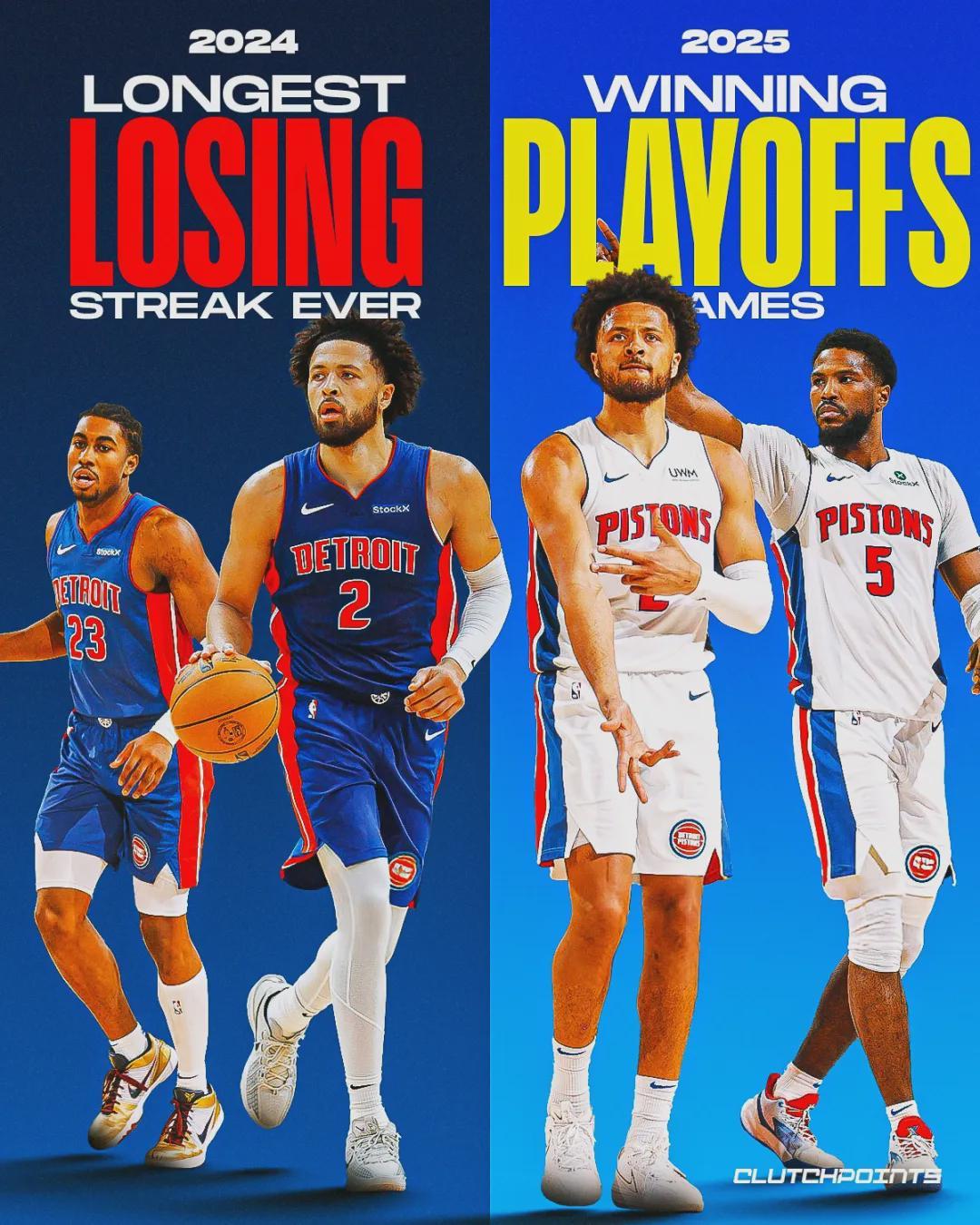 活塞上一次征战季后赛是2018-19赛季,他们从2019-20赛季开始摆烂,2024-25赛季翻身。重建过程中犯了一些错误:2023年夏天,活塞6年7850万美元聘请蒙蒂担任主教练,只干了一年就被解雇,合同还剩5年6500万美元。