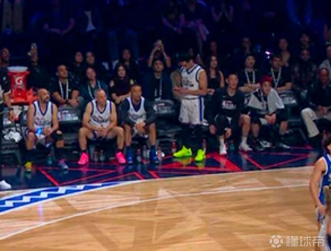 本场比赛NBA名记Shams也代表字母哥队出场,有意思的是在比赛中Shams还在替补席查看手机。